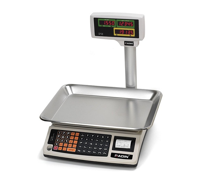 ترازوی پرینتر دار رادین مدل 1230 یک ترازوی علمک دار است که داشتن چاپگر بزرگترین ویژگی آن محسوب می شود. ترازویی که برای سطح دیگری از خریداران ترازوی ساده رادین تولید شده است. سطحی که مایل به چاپ رسید برای مشتری هستند. ترازوی پرینتر دار رادین مدل 1230 را باید مجهزترین ترازو از دسته ترازوهای ساده رادین دانست. ترازویی با ظرفیت توزین 30 کیلوگرم و حساسیت 1گرم. ترازو پرینتردار رادین علمک دارد و روی علمک سه نمایشگر LED برای نمایش دادن قیمت واحد و قیمت کل و وزن وجود دارد. صفحه کلید این ترازوی فروشگاهی دکمه بیشتری از نمونه های ساده دارد. عمده این دکمه ها به کار حافظه 300 تایی ترازو می آید. به راحتی می توان تمامی اقلام و اجناس موجود در یک سوپرمارکت را در حافظه ترازوی 1230 جا داد. وجود چاپگر امکان چاپ رسید را برای مشتری فراهم می کند. تهیه فاکتور یا رسید خرید علاوه بر رسمی جلوه دادن خرید مشتری، بر وجهه فروش نیز تاثیر مثبت خواهد داشت. چاپگر درست در کنار صفحه کلید و روبروی کاربر تعبیه شده است. امکان گزارش گیری نیز با ترازوی پرینتر دار رادین مدل 1230 وجود دارد. گزارش گیری می تواند برای اطلاع از نحوه فروش، کالاهای پرفروش و نتیجه گیری از این اطلاعات و پیریزی برنامه برای آینده بسیار مفید باشد. دو نوع فروش وزنی و عددی برای ترازو فروشگاهی رادین مدل 1230 امکان دارد. فروش عددی برای اقلامی مانند مربا و کنسرو به کار خواهد آمد. داشتن باتری قابل شارژ داخلی نیز می تواند در مواقع نبود برق شهری، ترازو را برای استفاده مهیا کند. با توجه به قیمت نسبتا بالای ترازوی های چاپگردار خارجی، ترازوی پرینتردار رادین با توجه به کیفیت ساخت و امکاناتی که دارد، مقرون به صرفه ترین ترازو برای کسب و کارهایی است که نیازمند ترازویی چاپگر دار هستند.
