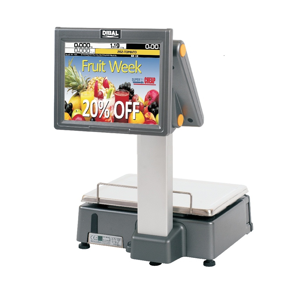 ترازو فروشگاهی تمام لمسی دیبال مدل D-900 در میان نسخه های مختلف این مدل، نمایشگر بزرگ تری دارد. نمایشگری که به واسطه توانایی ها و قابلیت ها، یکی از قوت های ترازوهای مدل D-900 است. این ترازو با دو دقت 5 گرم و 10 گرم طراحی شده است. عملکرد ترازو با دو حساسیت اینگونه است که تا وزن 15 کیلوگرم با 5 گرم حساسیت، و تا 30 کیلوگرم با 10 گرم دقت اندازه گیری خواهد شد. ابعاد ترازو 37×47×60 سانتیمتر است و 60 سانتیمتر ارتفاع آن است. نمایشگر تمام لمسی و گرافیکی با قابلیت تنظیم ارتفاع و دو طرفه است. تمامی عملکردهای دستگاه را می توان روی نمایشگر پیاده کرد. علاوه بر آنکه محتویات رسید روی نمایشگر مشاهده شدنی است، دسته بندی ها، وزن، قیمت و قیمت کل، ماشین حساب، عکس اجناس به همراه قیمت، همگی را می توان در نمایشگر مشاهده کرد. امکان دسته بندی محصولات قابلیت بسیار سودمندی است که در فروشگاه های بزرگ و زنجیره ای کارایی فراوانی خواهد داشت. برای مثال می توان دسته بندی اقلام دریایی، صیفی جات، مواد غذایی، شوینده و غیره تهیه کرد. امکان پخش تبلیغات از قابلیت های جالب این نمایشگر است. پخش شدن تبلیغات یا تخفیف های فصلی و ماهانه می تواند در جلب نظر خریداران و اطلاع از فعالیت های فروشگاه بسیار مفید باشد. ترازو فروشگاهی تمام لمسی دیبال مدل D-900 را می توان با رمزگذاری امن کرد. در عین حال امکان دادن دسترسی به 20 کاربر وجود دارد و می توان برای هر یک سطح دسترسی تعریف کرد. ترازوی لیبل پرینتر D-900 تعداد 999 حافظه مستقیم دارد که با 10 هزار حافظه غیرمستقیم عدد بزرگی را می سازند تا امکان ثبت اطلاعات تمامی اقلام و اجناس فروشگاه های بزرگ میسر باشد. بدنه ترازوی لیبل پرینتر D-900 بسیار ارگونومیک طراحی شده است و جز بدنه ای چهار گوش، زائده دیگری در اطراف آن دیده نمی شود. چاپگر ترازو نیز در گوشه ای از آن تعبیه شده است و زاویه برخورد دو دیواره بدنه، شکاف بیرون آمدن رسید خواهد بود. چنین طراحی هوشمندانه ای تحسین شدنی است. چاپگر ترازوی فروشگاهی D-900 دیبال از نوع حرارتی است و می تواند رسید را با سرعت 100 میلیمتر در ثانیه چاپ کند. علاوه بر چاپ رسید امکان چاپ برچسب و بارکد نیز وجود دارد. برای برچسب و رسید می توان لوگو طراحی کرد. می توان بر روی برچسب بارکد درج کرد. ترازوی فروشگاهی دیبال قابلیت نصب برنامه های جانبی و تحت ویندوز را دارد به این ترتیب می توان برنامه ای مانند Dibal Web Server را برای ترازو نصب کرد و امکان برقراری ارتباط بین کامپیوتر و ترازو یا گوشی همراه و ترازو را فراهم کرد. از نظر اتصال به دستگاه های دیگر به سبب وجود درگاه هایی چون RS 232 USB / Ethernet / 24 VCD، ترازوی علمک دار دیبال مدل D-900 در شرایط خوبی است و به کمک این پورت ها می توان ترازو را به صندوق فروشگاهی و کارت خوان و بارکد خوان متصل کرد. ترازو لیبل زن دیبال، نوع علمک دار را می توان به هر فروشگاه بزرگ و مرکز خریدی پیشنهاد داد. چراکه وجود به روزترین و برترین فناوری ها بر روی این ترازو ایده آل ترین خواسته هر متقاضی ترازو است. نمایشگر مشتری و نمایشگر اصلی 12/12 می باشد .