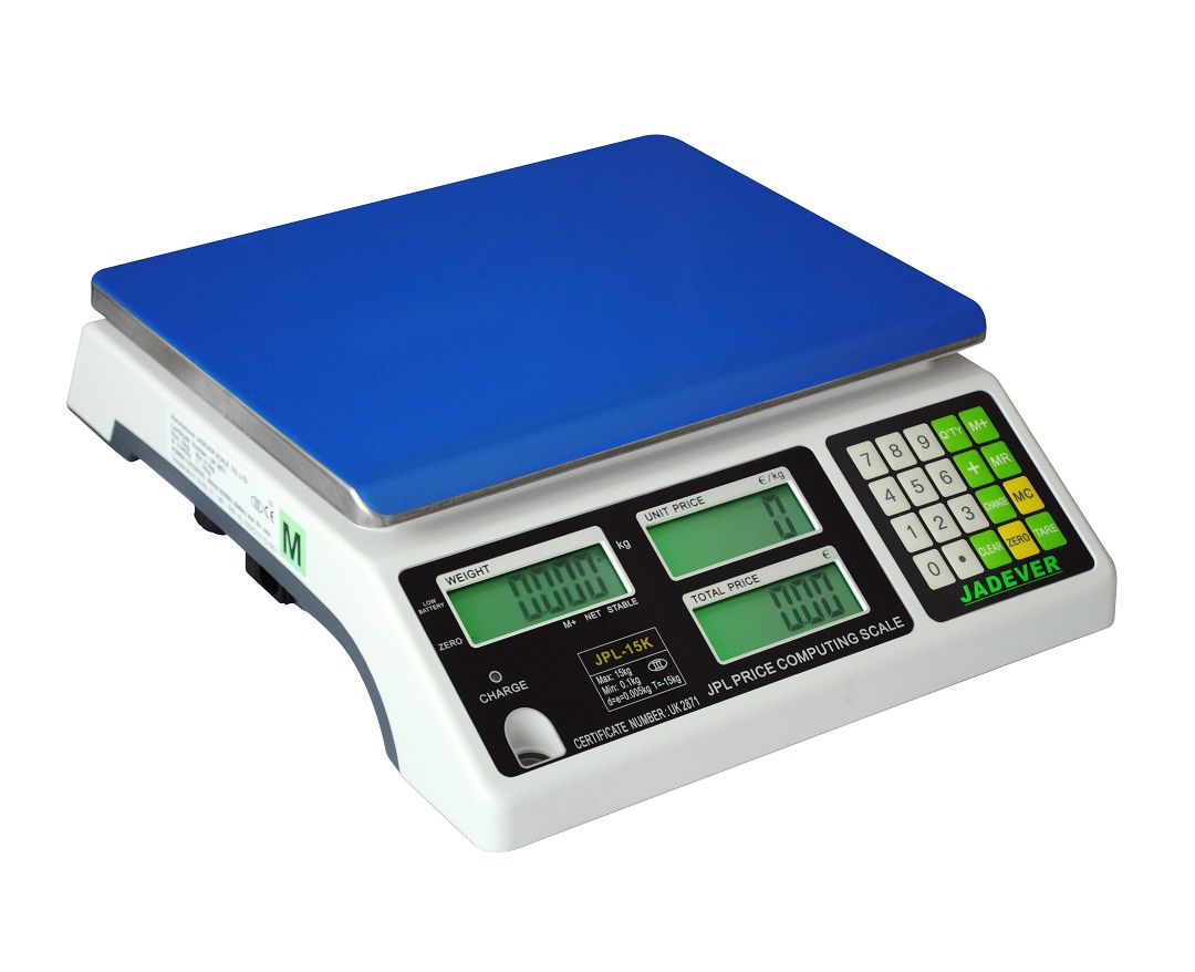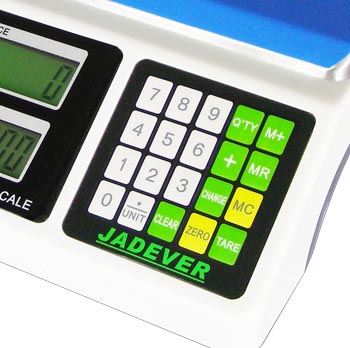 ترازو فروشگاهی ساده جادور مدل JPL نمونه دیگری از این شرکت تایوانی است که با قابلیت های حداقلی، اقشار و اصناف کم بضاعت را هدف قرار داده است تا تهیه یک ترازوی فروشگاهی ساده را برایشان آسان کند. بدون شک نمونه ترازوی ساده جادور مدل JPL را بسیار دیده اید. از دست فروشان کنار جاده گرفته تا سوپرمارکت های کوچک و میوه فروشی ها محلی. حتی می توان از این ترازو دیجیتالی کوچک استفاده های صنعتی نیز انتظار داشت. این ترازو 4 نمونه مختلف دارد که با ظرفیت ها و حساسیت های گوناگون عرضه شده اند. ترازو فروشگاهی ساده جادور مدل JPL با توان توزین 3 کیلوگرم و 6 کیلوگرم و 15 کیلوگرم و 30 کیلوگرم به ترتیب دارای حساسیت های 0.5 گرم و 1 گرم و 2 گرم و 5 گرم است. ابعاد ترازوی فروشگاهی جادور 314×29.4×10.4 سانتیمتر تخمین زده شده است که آن را ترازویی کوچک نشان می دهد. طراحی ظاهری JPL ذوزنقه ای و همچون دیگر ترازوهای بدون علمک است. سه نمایشگر از نوع LCD و بدون نور پس زمینه دارد که نمایش دهنده وزن کالا، قیمت آن و قیمت کل است. صفحه کلید ترازو در کنار نمایشگرها قرار گرفته است و ترکیب رنگ روشن و شادی دارد. ترازوی فروشگاهی JPL جادور از قابلیت پارسنگ بهره می برد که امکان محاسبه وزن خالص را مهیا می کند. این قابلیت با فشردن یک دکمه فعال می شود. قابلیت OVER LOAD یا اضافه بار نیز برای این ترازوی کوچک در نظر گرفته شده است. این قابلیت برای محافظت از حسگر توزین تعبیه شده است تا هنگامی که وزنی بیش از اندازه روی ترازو قرار بگیرد، ترازو هشدار بدهد. خاموش شدن خودکار برای صرفه جویی در مصرف انرژی ترازو و شمارش قطعه از دیگر قابلیت های این ترازوی ساده تایوانی است.