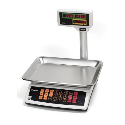 ترازو فروشگاهی ساده رادین مدل 1204 یکی از نمونه های بسیار باکیفیت ترازوهای ساده به شمار می آید. ترازویی که بدون قابلیت های آنچنانی، تنها برای وزن کردن و محاسبه قیمت کل خرید طراحی شده است. ساختارش از نوع علمک دار است و با تعبیه کردن دکمه های درشت و رنگی بر روی صفحه کلید، کاربری آسانی از آن به دست داده است. 30 کیلوگرم ظرفیت توزین ترازو فروشگاهی ساده رادین مدل 1204 است که به همراه حساسیت قابل تنظیم عرضه شده است. حساسیت این ترازوی ساده روی 1گرم می باشد. روی علمک نمایشگرهای کوچک LED جا دارند که سه شاخص مهم ترازوهای فروشگاهی یعنی قیمت و وزن و قیمت کل را نمایش می دهد. سینی ترازوی رادین 23.5×36 سانتیمتر اندازه دارد و از انواع لبه دار است. آلیاژ به کار رفته در ساخت سینی نیز همچون دیگر ترازوها، از استیل است. ترازوهای ساده فروشگاهای به چاپگر مجهز نیستند و طبیعتا از مزایایی همچون چاپ رسید هم بی بهره اند. همچنین از تعبیه کردن درگاه های اساسی و مهم نیز روی این مدل ها خودداری می شود تا هزینه تمام شده دستگاه پایین بیایید. با این وجود ترازو فروشگاهی ساده رادین مدل 1204 دو ویژگی بسیار کارآمد را از ترازوهای فروشگاهی پیشرفته تر قرض گرفته است. داشتن باتری پشتیبان و حافظه داخلی، دو ویژگی ترازو علمک دار 1204 رادین است. بدون شک در نبود برق شهری و منبع اصلی تامین انرژی، استفاده از باتری پشتیبان مزیتی بزرگ است. همچنین داشتن 8 حافظه داخلی که می توان از دکمه های صفحه کلید به آن دسترسی داشت، فراخوانی اطلاعات اقلام پرفروش یک سوپرمارکت کوچک را بسیار آسان خواهد کرد. به این قابلیت ها، شمارش قطعه و فروش عددی و غیروزنی، و امکان قفل کردن ترازو برای مدت زمانی مشخص را نیز اضافه کنید.