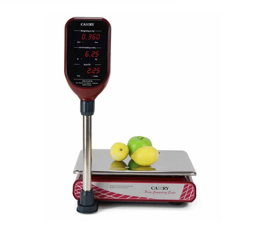 ترازو فروشگاهی علمک دار کمری مدل JE11A نمونه علمک دار ترازوی ساده کمری مدل JE11 است. این ترازوی فروشگاهی هم در دسته ترازوهای ساده و بدون چاپگر قرار می گیرد. ترازویی که وزن می کند و مبلغ خرید جزئی مشتری را در یک سوپرمارکت کوچک یا بقالی محاسبه می کند. با 1 گرم حساسیت و ظرفیت توزین 30 کیلوگرم می تواند به عنوان یک ترازو فروشگاهی حساس در نوع خود و برای کاربری های ساده شناخته شود. طراحی ترازو فروشگاهی علمک دار کمری مدل JE11A شیک و جذاب است. پلاستیک فشرده به کار رفته در ساخت بدنه آن از نوع شفاف است و جلوه چشم گیری به ترازو می دهد. این ترازوی فروشگاهی فاقد هرگونه امکانات جانبی است و حتی باتری داخلی قابل شارژ هم ندارد. به جای آن، قادر است در زمان اتصال به برق، مقادیری انرژی ذخیره کند و به مدت 48 ساعت ترازو را بدون اتصال به برق روشن نگه دارد. نمایشگر LED دوطرفه ترازوی JE11A از انواع جدید LEDها است و کیفیت خواندن اعداد در آن بالاست. برای این ترازو می توان بر اساس نیاز و سلیقه خریدار، دو نوع سینی انتخاب کرد. سینی همچون دیگر ترازوهای فروشگاهی از استیل است. ترازوی JE11A دارای 2 سال گارانتی است.