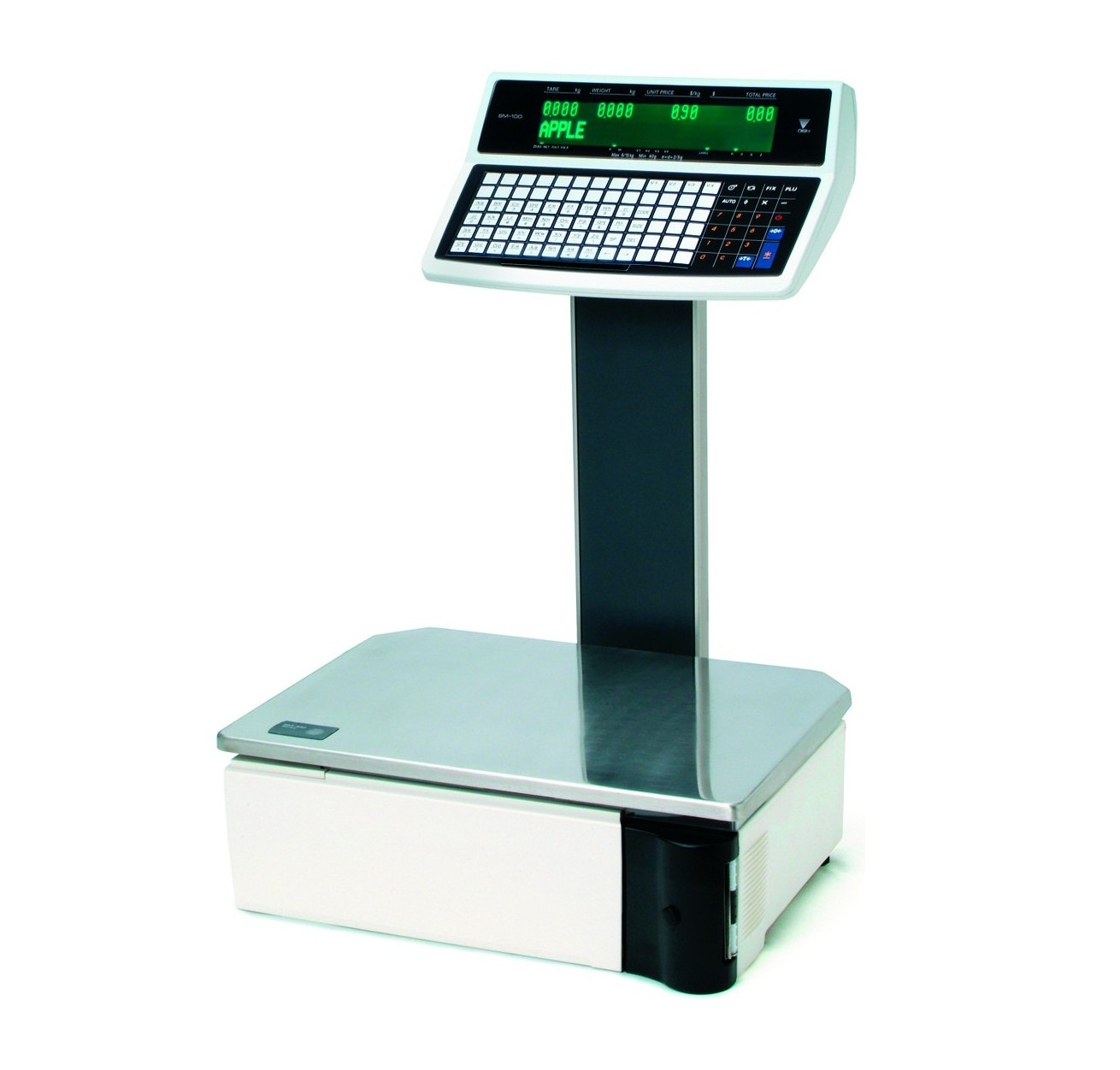 ترازو فروشگاهی لیبل زن DIGI مدل SM-100EV ترازویی مدرن است. ساختاری شبیه به ترازوهای فروشگاهی پند مدل PX7500 دارد و صفحه کیبورد روی علمک قرار گرفته است. این نوع از ترازوها بیشتر به درد میادین میوه و تره بار یا جاهایی میخورد که با رطوبت و آب سروکار دارند. بدنه اصلی ترازو تنها از سینی تشکیل شده است. سینی طبعا استیل است. در گوشه ای از بدنه ترازوی لیبل زن SM-100EV چاپگر تعبیه شده است. آلیاژ استیل مقاومت بسیاری در برابر زنگ زدگی دارد و استحکام آن نیز بر عمر مفید دستگاه می افزاید. یک نمایشگر یک تکه نمایش دهنده تمامی اطلاعاتی است که خریدار و فروشنده نیازمند دانستن آن هستند. گفتنی است که این نمایشگر قادر به نمایش دادن اعداد و اسامی فارسی نیز هست. ترازو فروشگاهی لیبل زن DIGI مدل SM-100EV می تواند 30 کیلوگرم وزن را محاسبه کند. منتها با 2 حساسیت. این ترازو تا وزن 15 کیلوگرم را با دقت 5 گرم اندازه می گیرد و از 15 کیلوگرم تا 30 کیلوگرم را با 10 گرم حساسیت می سنجد. صفحه کلید 74 دکمه ای ترازوی فروشگاهی دی جی، امکان دسترسی به حافظه ترازو را که در حالت پیش فرض 1 مگابایت ظرفیت دارد، میسر می کند. این حافظه را می توان ارتقا داد و تا 2 مگابایت بر ظرفیت حافظه ترازو افزود. ترازوی لیبل پرینتر DIGI مدل SM-100EV چاپگر دارد. این چاپگر می تواند رسید خرید مشتری را با سرعت 1.5 میلی متر بر ثانیه چاپ کند. سرعت چاپ برچسب این چاپگر پایین تر است و به 80 میلی متر بر ثانیه می رسد. SM-100EV می تواند رسید، برچسب و بارکد تولید کند که همگی در فروشگاه های بزرگ کاربردهای سودمندی دارند. دو درگاه کاربردی پشت ترازو فروشگاهی لیبل پرینتر DIGI تعبیه شده است که می تواند آن را به دستگاه های جانبی دیگری مانند کامپیوتر و بارکد خوان و کارت خوان و صندوق فروشگاهی متصل کند. ارتباط و اتصال با هر یک از این دستگاه ها می تواند بر گسترش کاربری های ترازو موثر باشد. امکان اتصال به شبکه WiFi یکی از به روزترین قابلیت ها و کاربردی ترین مشخصه های ترازو فروشگاهی لیبل زن DIGI به مشار می آید. از این طریق می توان ترازو را در بستر شبکه ای از ترازوها قرار داد. از دیگر گفتنی های این ترازو باید به قابلیت پارسنگ آن اشاره کرد که می تواند تا 11.7 کیلوگرم وزن را محاسبه کند. این قابلیت امکان محاسبه وزن خالص مواد و اقلام را فراهم می کند. ترازوی دیجیتال و لیبل زن دی جی یکی از بهترین انواع ترازوهای فروشگاهی محسوب می شود که با توجه به ساختار طراحی شده در آن، می تواند در مراکز و فروشگاه های بسیاری به کار گرفته شود.