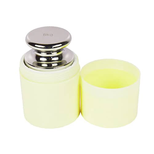 وزنه 5 کیلوگرمی استیل کلاس F1 وزنه ای است برای کالیبره کردن ترازوهای دیجیتالی که به کالیبراسیون دستی مجهزند؛ طبعا ترازوهایی که کالیبراسیون داخلی و خودکار دارند، بی نیاز از وزنه کالیبراسیون هستند. این وزنه 5 کیلوگرم وزن دارد و به صورت استوانه ای ساخته شده است.جنس وزنه کالیبراسیون 5 کیلوگرمی از استیل ضدزنگ است که به استیل 304 نیز مشهور است. این آلیاژ به قدر مطلوب چگال است و از سنگینی یا پُری مناسبی بهره می برد. در عین حال غیرمغناطیسی است؛ یا به قول بازاری های ایرانی، نگیر است. نگیر اصطلاحی است که به استیل غیرمغناطیسی اتلاق می شود و استیل مغناطیسی را نیر بگیر می گویند. توجه داشته باشید که وزنه ای را خریداری کنید که معیارهای وزنه استاندارد را داشته باشد و حتما دارای گواهی کالیبراسیون باشد. این گواهی از طرف شرکت سازنده صادر می شود و مهر و امضای شرکت را نیز پای گواهی دارد و نشان دهنده رعایت استانداردهای وضع شده از طرف سازمان اندازه شناسی قانونی (OIML) است. این سازمان بین المللی برای یکسان سازی معیارهای توزین در سطوح ملی و بین المللی، موازین و مقرارت و استانداردهایی را برای تمامی ترازوهای دیجیتالی در سرتاسر دنیا وضع کرده است. سنگ 5 کیلوگرمی استیل کلاس F1 با ضمانت تایید شدن در تمامی آزمایشگاه های کالیبراسیون داخلی عرضه می شود.